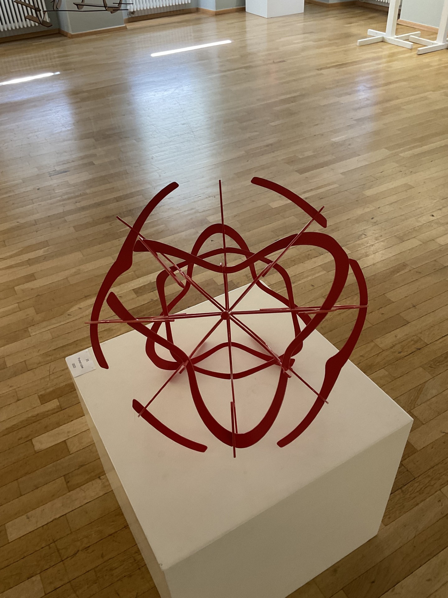 lasergeschnittene MDF-Platten. Variationen einer kubischen Urform mit 5 kreisförmigen Durchbrüchen auf jeder Kubusseite („ported cube„)